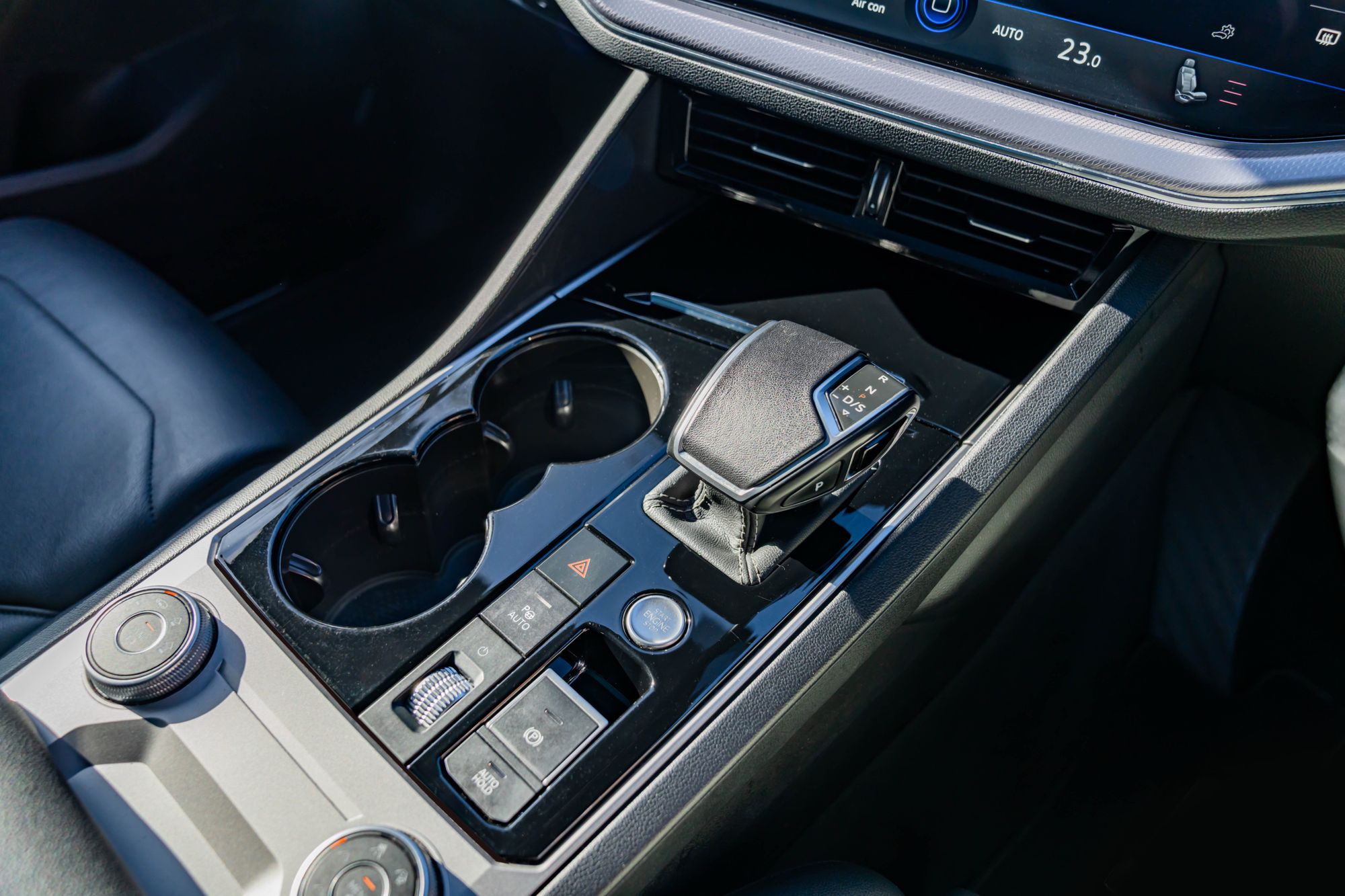 Leather Trimmed Gear Knob with Gloss Black Inlays and Aluminium Trim